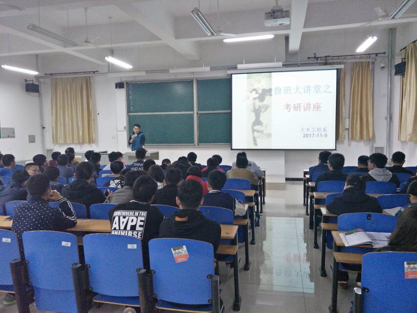 2017年11月9日下午,土木工程系“鲁班大讲堂之考研讲座”在3C104教室成功举办。本次交流会由系团委书记、学工办主任欧仁辉老师主持,系主任李自林教授以及青年教师叶全喜、王晓同、付建航四位老师担任主讲嘉宾。