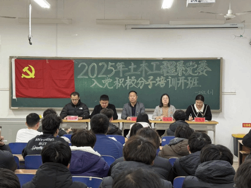 11月17日晚,土木工程系党委2025年秋季入党积极分子培训班在3C201教室举行开班仪式。党委书记王诚杰、党委副书记韩艳丽、学生三支部书记李瑞雪、优秀积极分子代表李宇晗和43名积极分子参加。仪式由组织员付建航主持。