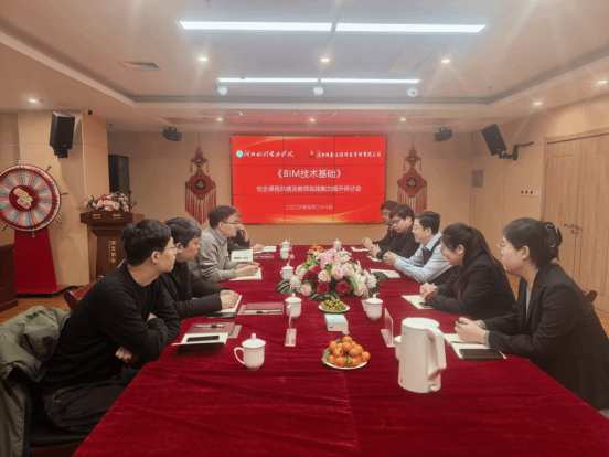 座谈会上,李树谦主任明确合作核心方向。他表示,土木工程系始终以行业需求为导向,希望以《BIM技术基础》课程建设为重要抓手,通过校企联动搭建教师实践锻炼平台,全面推行项目式教学模式。让学生深度参与工程项目实际运作与管理流程,在实践中锤炼专业技能、提升综合素质,为未来职业发展筑牢根基。随后,杨增杰经理结合企业实践展开分享,系统解读了BIM技术在全生命周期管理中的应用价值,介绍了企业BIM事业部架构,并通过近年承接的住宅、市政等标杆项目案例,展示了BIM技术在成本控制与效率提升中的实战成效。最后,校企双方就协同发展的关键路径展开深入研讨,一方面,以课程内容革新为切入点,将企业真实项目融入教学环节;另一方面,搭建横向课题合作平台,依托高校的师资力量与科研资源,结合企业在工程实践中的技术需求,携手攻克行业难题,实现校企资源互补、互利共赢;同时,立足行业岗位核心诉求,进一步明确毕业生能力培养标准,确保人才培养与市场需求精准适配。